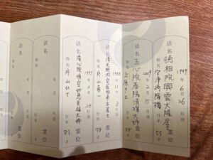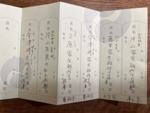 すべてのご先祖様をまとめて書く過去帳をいただけます。